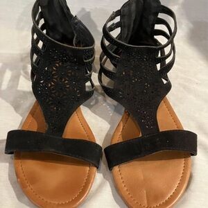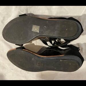 Black Gladiator Sandals with Crisscross Straps and Zipper Closure , good used condition.