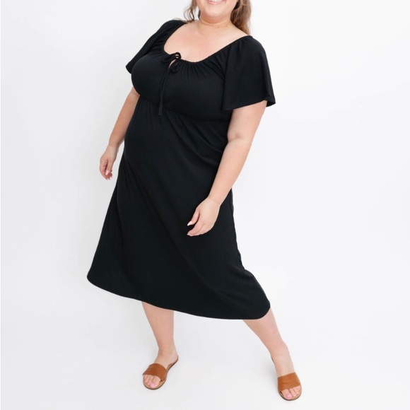 Cozy dress from smash n tess! Stretchy comfortable fabric. Cinched under bust and tie closure on bust. Can be worn off the shoulder as well. Super flattering and fits true to size!
