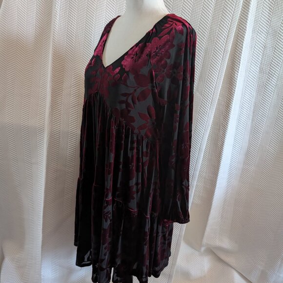 Taylor Burnout Velvet Babydoll Dress Black Maroon Burgundy Size 6