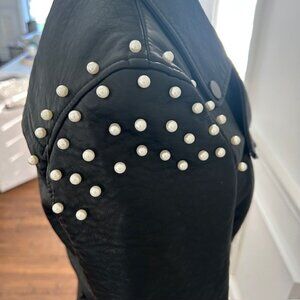 Taylor Hill by Joe's Women's Pearl Studded Faux Leather Moto Jacket
