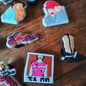 These are a set of 17 pre-worn Taylor Swift Croc Charms for your collection!