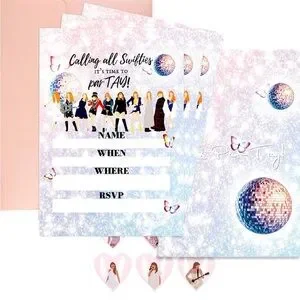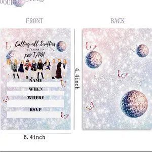 Vibrant party invitation set with a fun design. Features colorful graphics and disco ball theme. Perfect for any celebration.