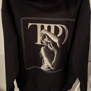Black "The Tortured Poets Department" zip-up hoodie, brand new never worn. Size medium. Perfect gift for the Taylor fan in your life, or treat yourself to a cozy sweater for the winter! Didn't get Eras Tour tix? Retail therapy to the rescue ;)