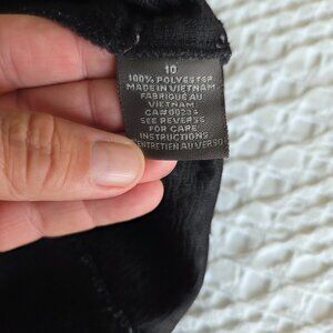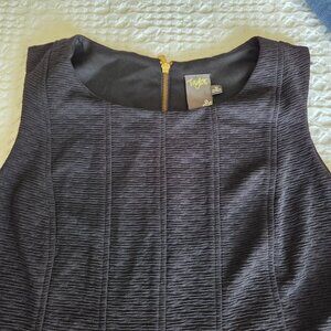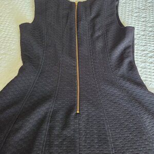 Very flattering fit and flare dress, perfect for any occasion. Very comfortable, knee length dress. Gold zippered back. Unlined.