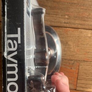 Stylish Taymor robe hook with a bronze finish. Ideal for enhancing any room's decor. Bella Nova style. New in box. Approximately 3 inches long. Heavier weight for secure storage. As shown in pictures.