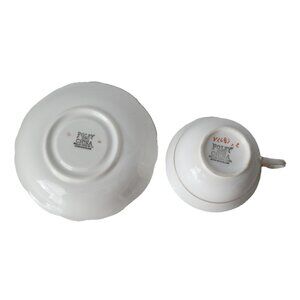 Both the cup and saucer are in very good condition with no chips, no cracks, and the glaze has a nice gloss. It is stamped on the bottom.