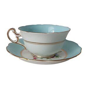 Tea Cup and Saucer Vintage Teacup Pale Blue Floral Foley Bone China