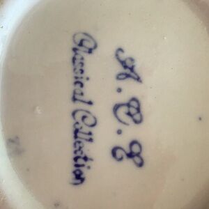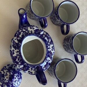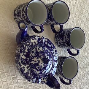 This tea service has four 8oz mugs and tea pot. It came from Germany and is in very good condition except for a small chip in the bottom edge of one mug.