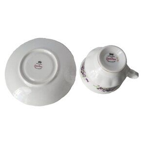 Teacup and Saucer Vintage Queen Anne Tea Cup Saucer Fine Bone China England Purp
