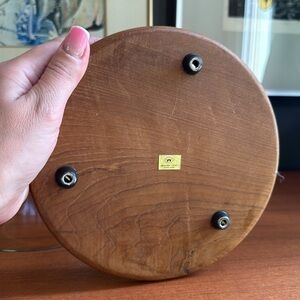 Teakwood cheese dome or butter dish, glass, cover tea, bottom, vintage, and cute