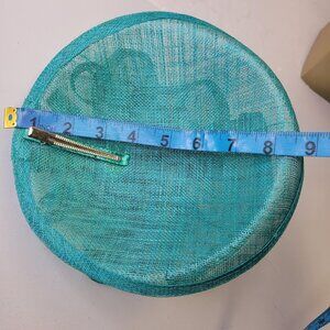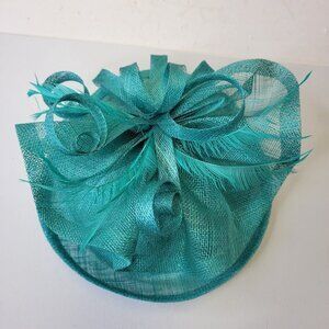 Teal or Turquoise Blue Disc Fascinator Upturned Brim Sinamay Loops Rosettes and Feathers
