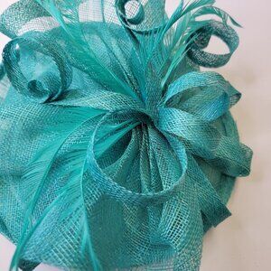 Teal Blue Fascinator with an Upturned Brim Sinamay Loops Rosettes and Feathers