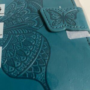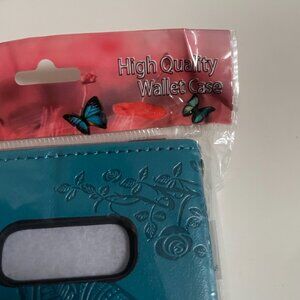 Teal Butterfly Embossed Wallet Case