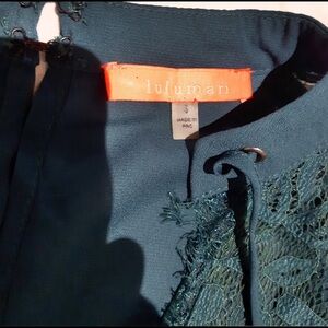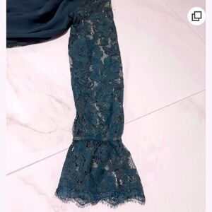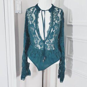 Teal Deep V Lace Bell Sleeved Lulumari Bodysuit