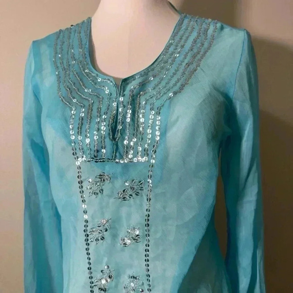 Teal Fairycore bling longsleeve blouse / coverup L y2k