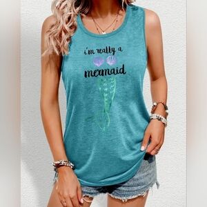 Embrace your inner mermaid with this stylish teal tank top. Perfect for casual outings, this top features a fun 'I'm Really a Mermaid' print. Stay comfortable and chic all day long.