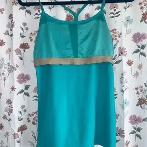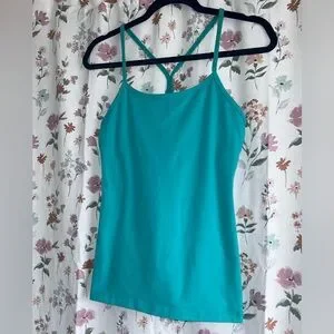Blue Teal Lululemon racerback tank top in size US 4 (fits true to size) with built in support bra- cups have been removed- able to replace if needed. Great for a summer run or workout session🏋️♀️ (Color appears differently in various lighting)