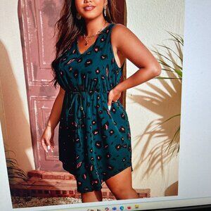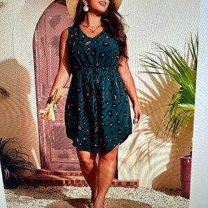 New SHEIN LUNE Plus All Over Print Knot Front Curved Hem Dress. Hand wash 100% Polyester.