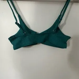 Stylish teal ribbed bikini top perfect for a day at the beach. Enjoy comfort and elegance with this chic swimwear piece.