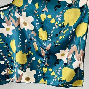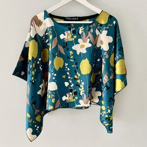 Beautiful teal satin floral poncho. Cropped loose fit. Some small imperfections in the weave, see last photos. No size listed but fits small. Length from shoulder to hem 48.0cm. Excellent used condition.