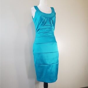 This elegant teal sleeveless dress is perfect for any occasion. Its sleek design and vibrant color make it a standout piece in your wardrobe. Marked size xs but fits more like a small (mannequin is standard small). Worn once to a wedding.
