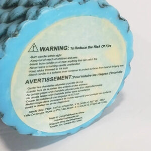Blue woven design wax candle unused.