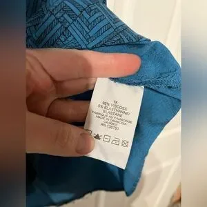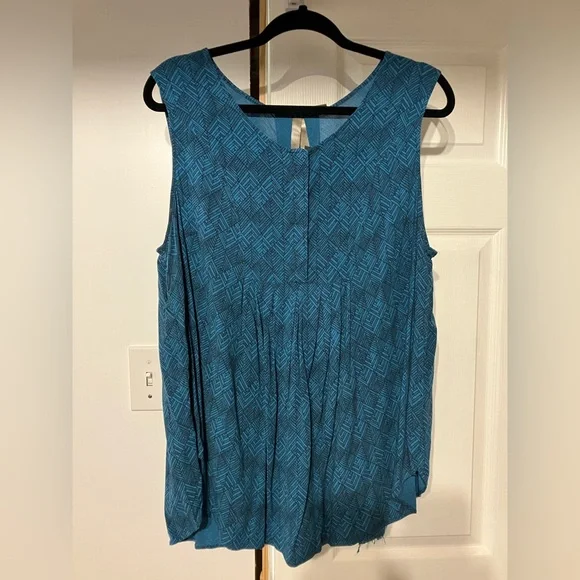 Sleeveless blouse from Penningtons. Nice and lightweight for summer! Material is a little sheer so depending on your bra colour you may want a tank underneath. In good used condition but just a bit of fraying on the bottom hem— see photo! Marked as blue but I would consider it more of a teal shade.