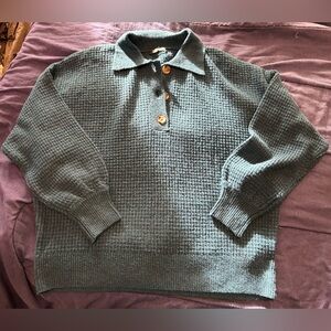 Teal blue soft knit sweater by Dex size 1XL true color shows in the photo with the label three button
