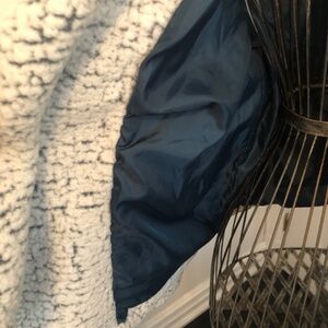Cuddly waterfall style jacket in white and teal is fully lined sized medium will fit medium to large