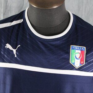 Up for sale is a retro Team Italy warm-up Jersey by Puma. It is a 2012 warm-up jersey with a blue base colour with white trim. The front of the jersey has the Team Italy logo crested on with the Puma logo on the opposite side. The back of the jersey has Italia screened on in white from shoulder to shoulder. What a great jersey do not miss out on it.