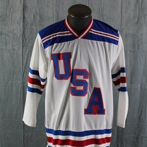 Team USA Hockey Jersey (VTG) - 1980s Home White by Empire - Men's 48