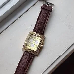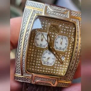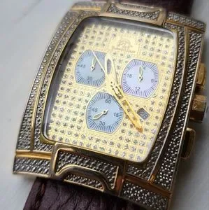 Techno Master TM-2057 wristwatch. Made of stainless steel in a gold color, it features white diamonds