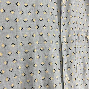 Ted Baker 100% Linen Arnel Geometric Print Blue Yellow Button Down Casual Summer Shirt Sz 4 (Large)