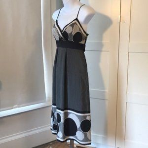100% silk. Fully lined with bias ties and hidden side zipper. Label reads size 1 which in TB sizing is 0-2. EUC no issues. Black/cream geometric design. Measures 25 under bust and bust is out to 30”.
