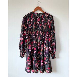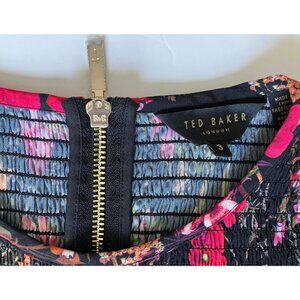 Ted Baker Aerrin Fern Forest Smocked Mini Dress Black TED 3/ US 8