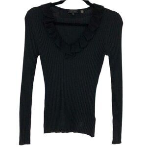 Ted Baker Anyibel Black Ruffle V-Neck Ribbed knit fitted sweater size 1 (small)
