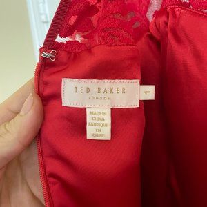 Ted Baker Caree Sheer Floral Overlay Dress Fuschia