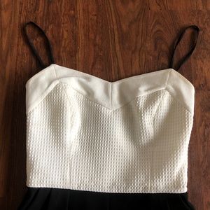 One-Time wear Cocktail Jumpsuit with grid pattern on top. Small pull on pant leg (see pic)