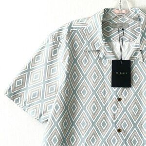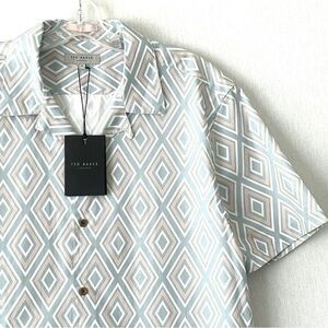 Ted Baker Cotton Collar Short Sleeves Shirt With Diamond Geometric Print