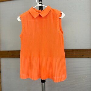 Ted Baker Dantea Orange Pleated Plisse Pleated Collar Sleeveless Blouse Sz 1 US4