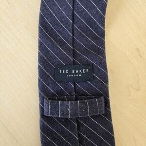 Beautiful dark blue cotton tie with elegant pinstripes. From Ted Baker. Looks casual yet elegant!