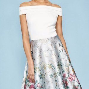 Ted Baker Dress Blue White Floral Patchwork Bardot
