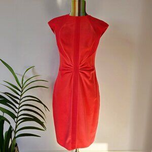 Ted Baker Dress Bright Coral Ruched Calf Length Sheath Ted Size 1 (US 4)