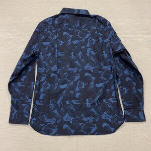 Ted Baker Dress Shirt Mens Large Blue Black Floral Print Long Sleeve