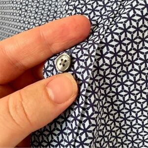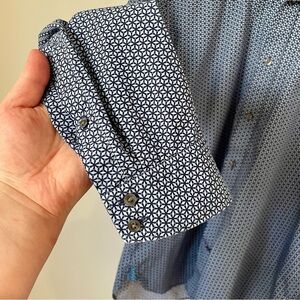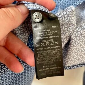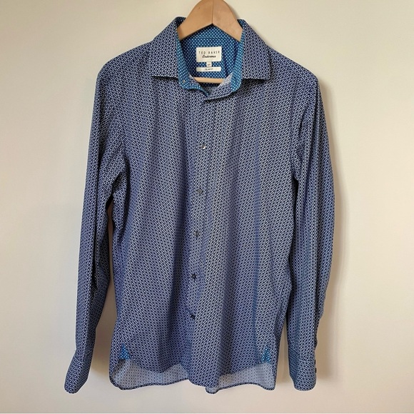 Ted Baker Endurance Slim Fit Cotton Button Down Dress Shirt Blue Size 16.5". Collared. Blue patterned all over print. Excellent condition.