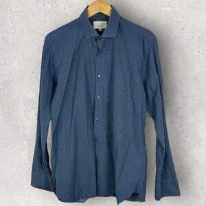 Ted Baker Endurance Tamson Button Front Collared Shirt Blue Print Mens Size 16