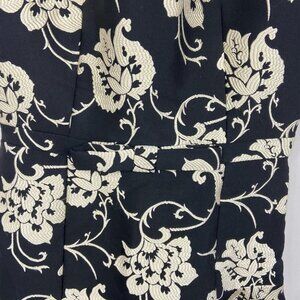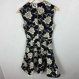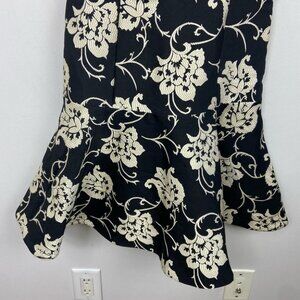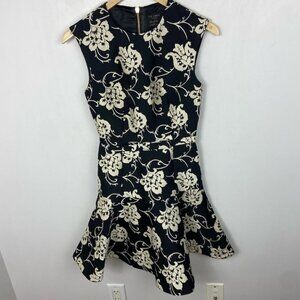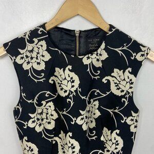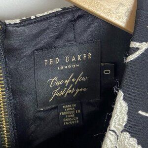 Ted Baker Fit Flare Ruffle Hem Dress Black Floral Size 0 Paisley Ornate Party