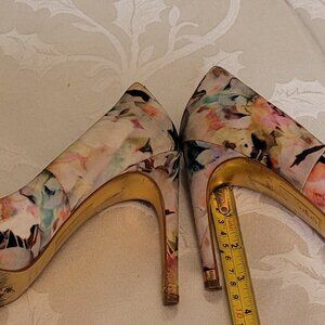 4 inch heel. No wear or tear on the heels. Worn a couple of time.