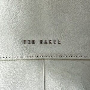 Ted baker hickory stab Stitch leather bag in mint green with silver hardware. Zipper closure, Two small handles and one large removable/adjustable strap. Raw leather interior and satin patterned interior pocket. Good used condition! There is wear to the handles, and a few small marks on the exterior of the bag, very light pen marks on bottom left corner, some wear to the bottom corners, marks and pen marks on interior. Please keep in mind the colour is a very light green and doesn’t show well in the photos Please see photos, reasonable offers welcome!