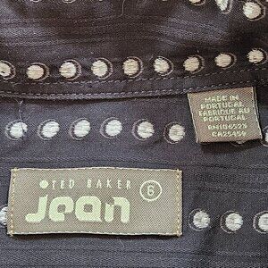 Ted Baker Jean Shirt Mens 6 US L Black Cream Cotton LS Swiss Dots Buttons Boho